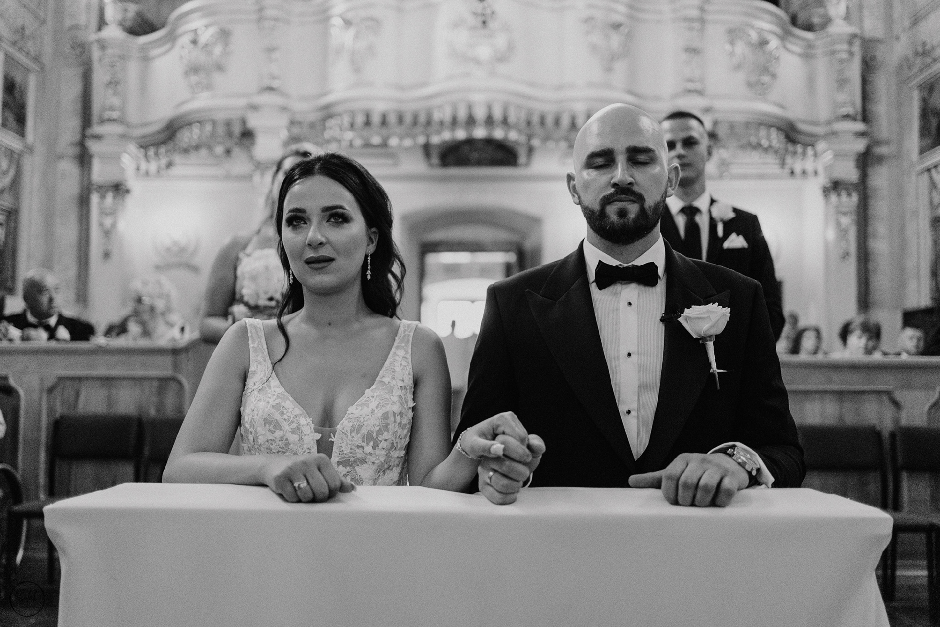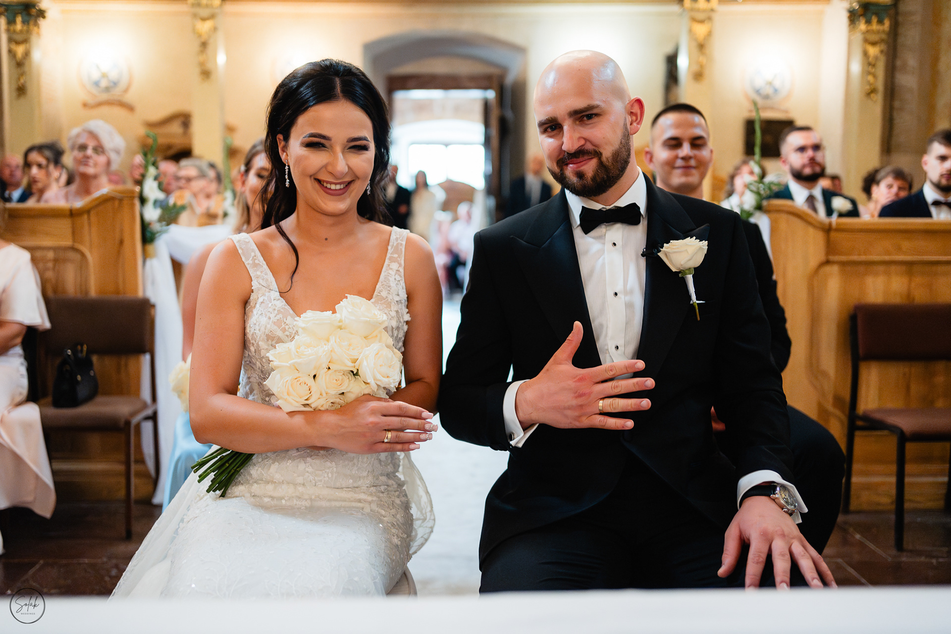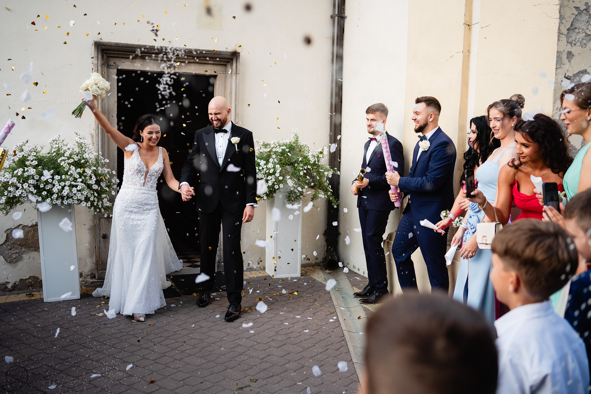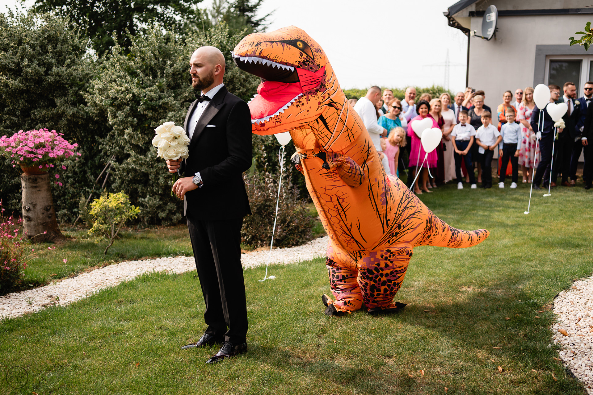 Były pełne energii przygotowania z drużbami i druhnami, hardcorowe wykupowanie Panny Młodej, (uwaga! spojler) First Look z dinozaurem oraz prawdziwe łzy wzruszenia po przysiędze. Poza tym byłem z Parą Młodą na mini sesji przed przepiękną salą Dwór Dwikozy, zrobiliśmy sesje z racami z ich szaloną ekipą, a po zmroku mogliśmy podziwiać tort na zewnątrz wraz z pokazem fajerwerków.
