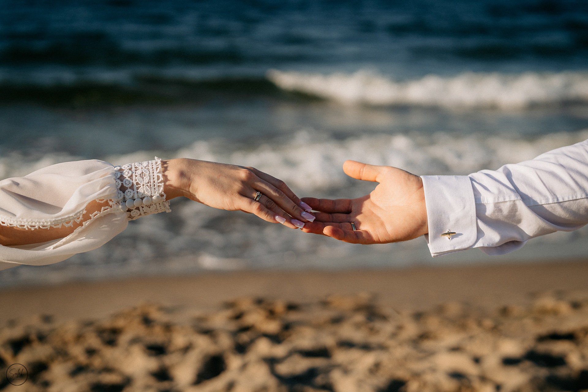 Sesje ślubne nad morzem w słoneczny dzień to prawdziwa magia. Otoczenie, jakie oferuje natura, daje niemal nieskończone możliwości. Za każdym razem, gdy wspominacie o pomyśle na sesję nad Bałtykiem, na mojej twarzy pojawia się szeroki uśmiech. W 2023 i 2024 roku udało mi się odwiedzić nasz piękny Bałtyk, a w nadchodzących latach mam nadzieję utrzymać tę tradycję.